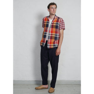 Four different checkered fabrics in two different combinations. All four fabrics are found as ‘deadstock’, meaning these two shirts will be limited in production quantity. The front parts are made of linen whilst the back parts linen (red) and cotton (blue).