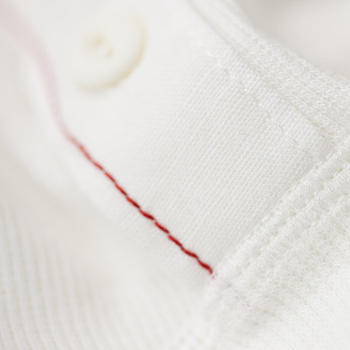 + COTTON BUTTON TAPE AND RED OVERSTITCH.